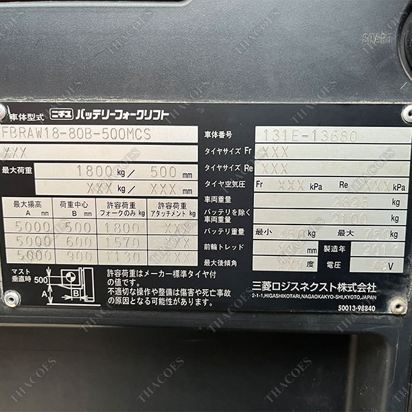 Nichiyu điện 1.8 tấn đứng lái cao 5 mét (FBRAW18-80B-500MCS-131E-13680)