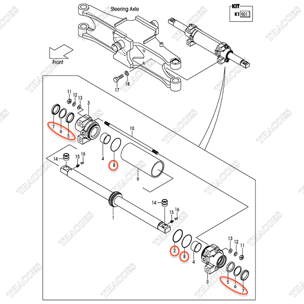 (Seri 2227-Up) Bộ phớt xi lanh lái 20A74-59801 (Inc 2,5-9)